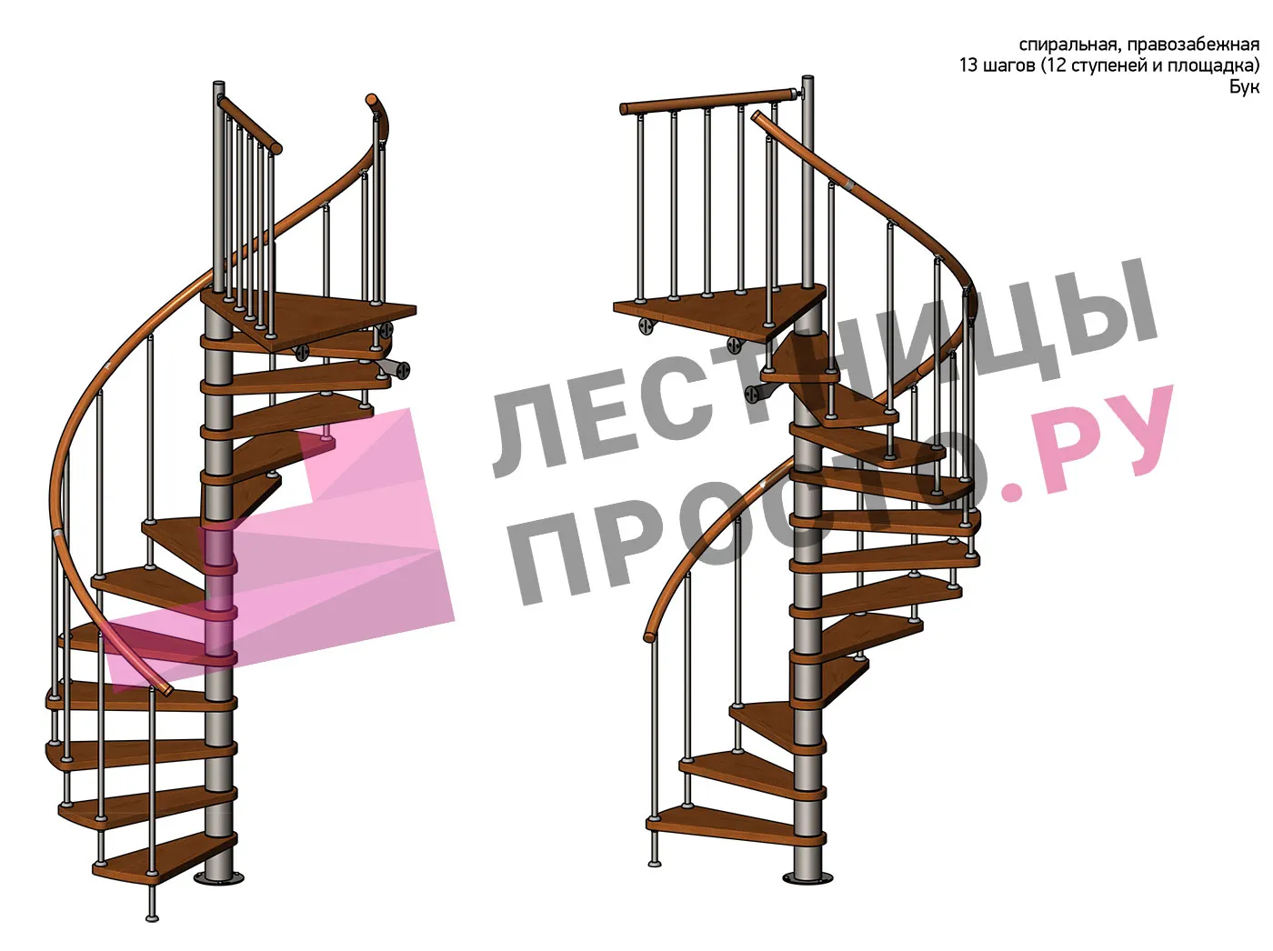 Ширина ступени между центральной колонной и поручнем ≈ 680 мм