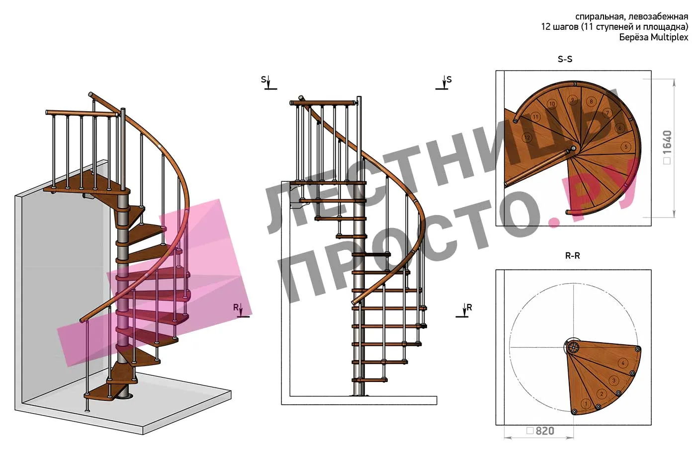 Винтовая лестница Prosto Spiral White D160см, h275.7-313.9 см