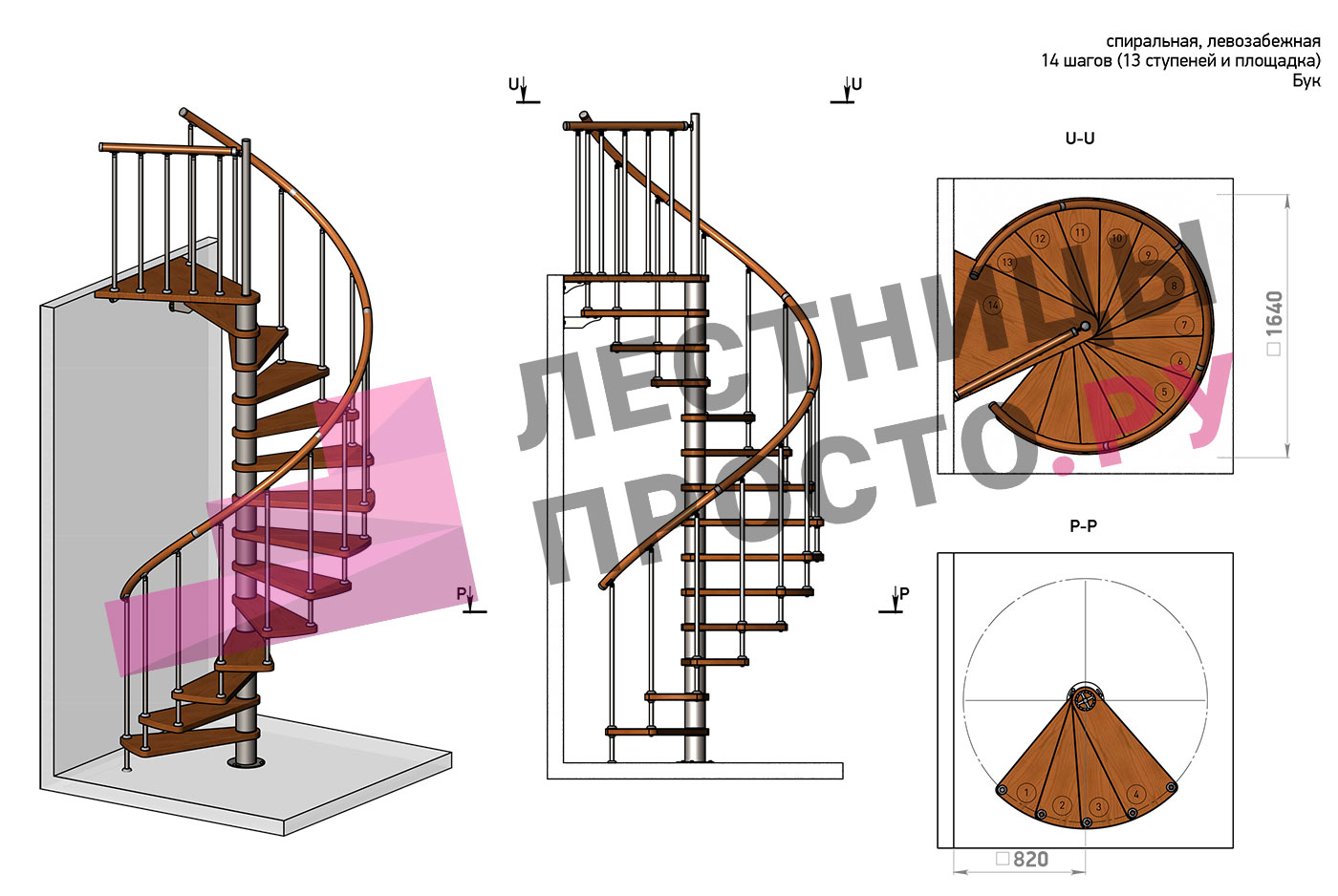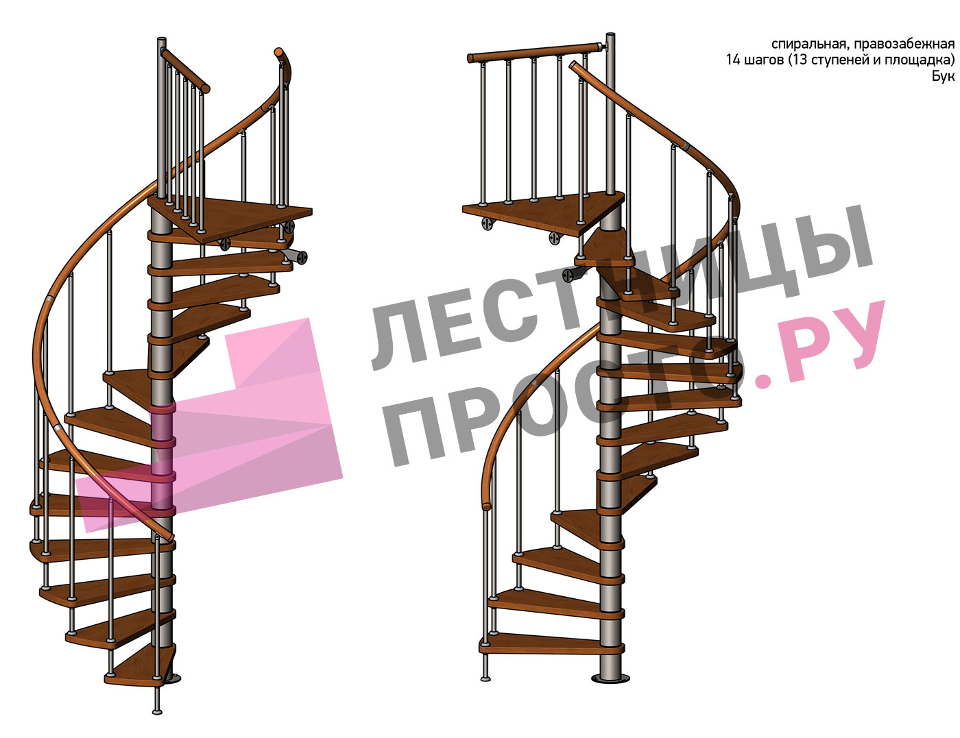 Винтовая лестница Prosto Spiral White D160см, h303.9-348,1 см, бук