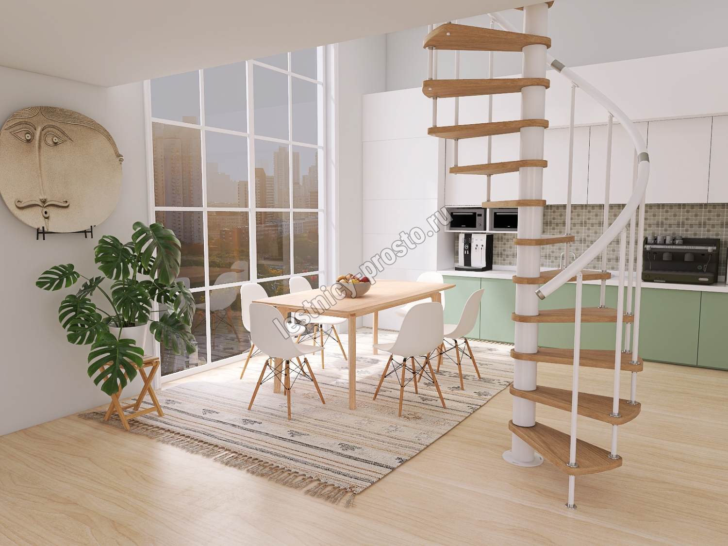 Винтовая лестница Prosto Spiral White D160см, h325.7-369.8 см, бук