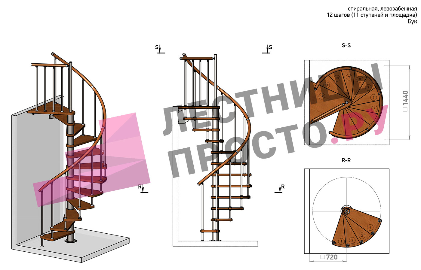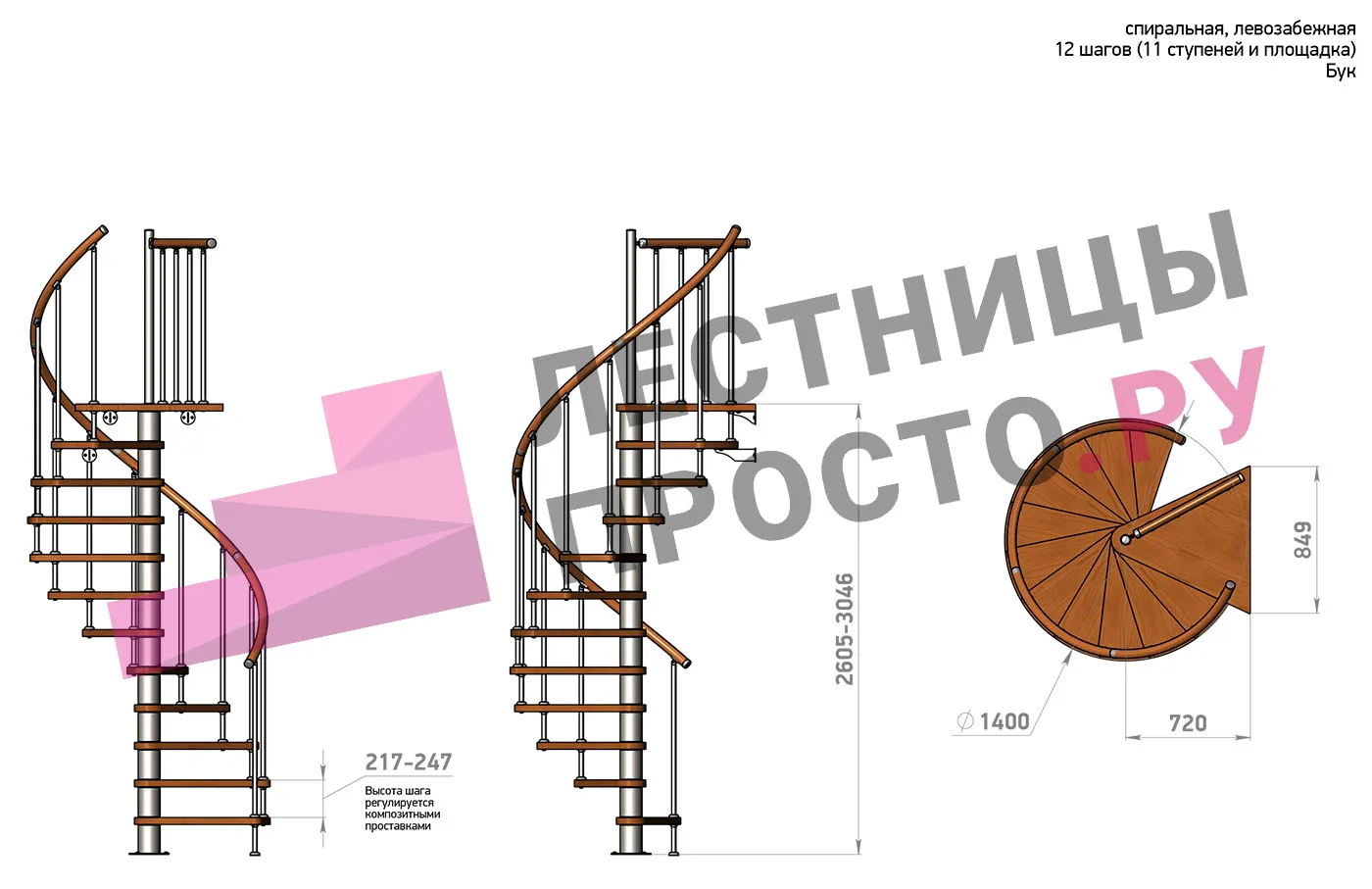 Высота ступеней регулируется с шагом 3 мм. в пределах 217-247 мм., благодаря чему, лестница прекрасно подгоняется под необходимую высоту.