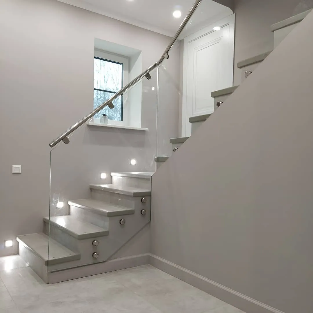 Балюстрада состоит из округлых балясин, трубок из нержавеющей стали и цельного гибкого ПВХ поручня.