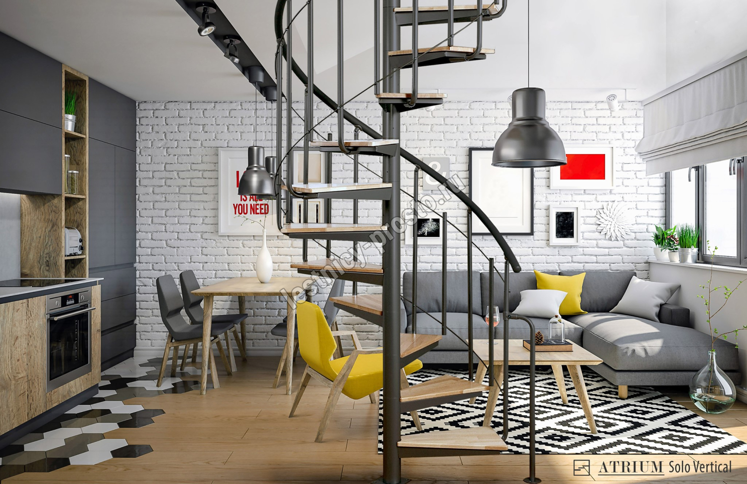 ATRIUM SOLO VERTICAL - это современная винтовая лестница, не требующая много места. Промышленный характер лестницы подчеркивают стальные тросы, используемые в балюстраде.