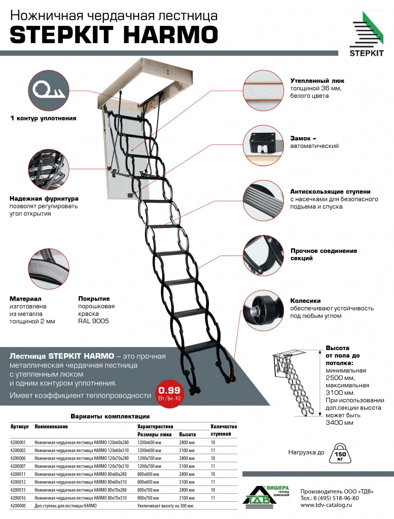 Кроме того, купив дополнительную секцию для этой лестницы, можно поднять высоту до 3320 мм.