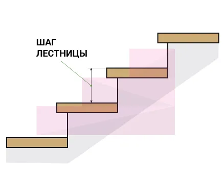 Шаг лестницы высота ступени, в том числе её толщина.