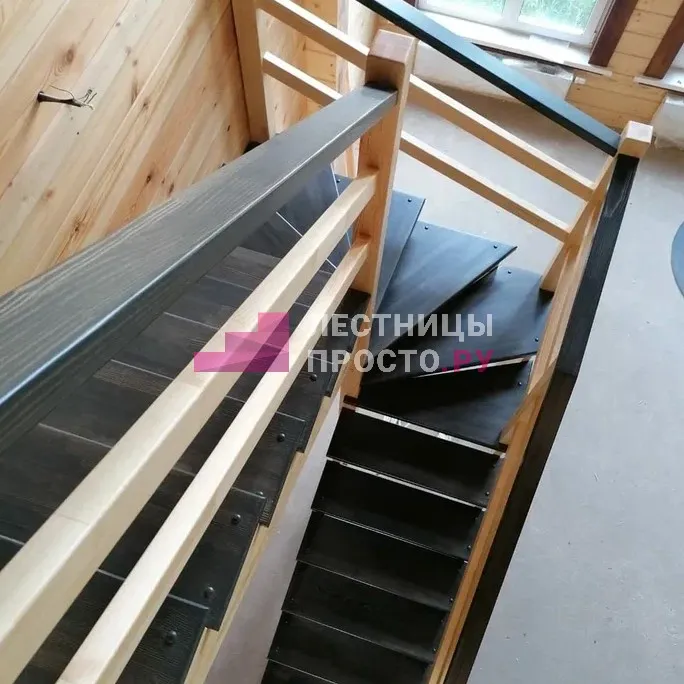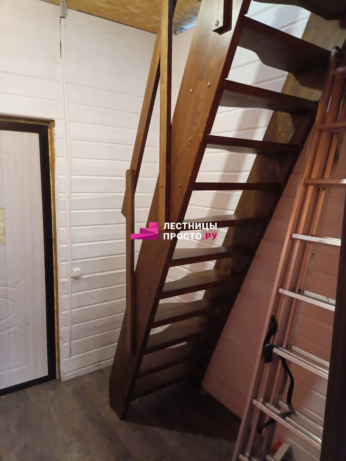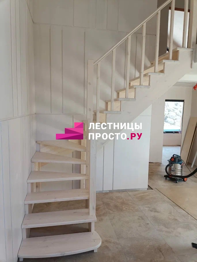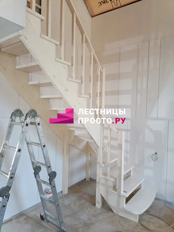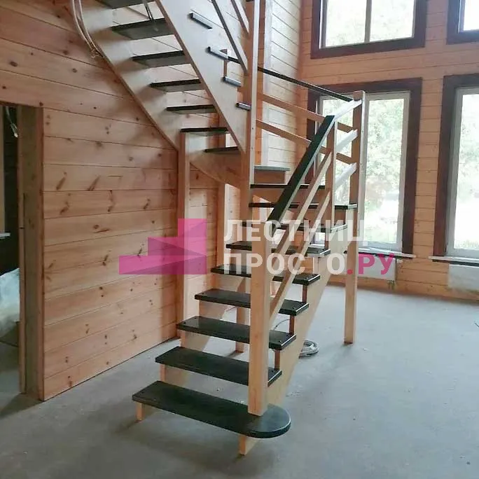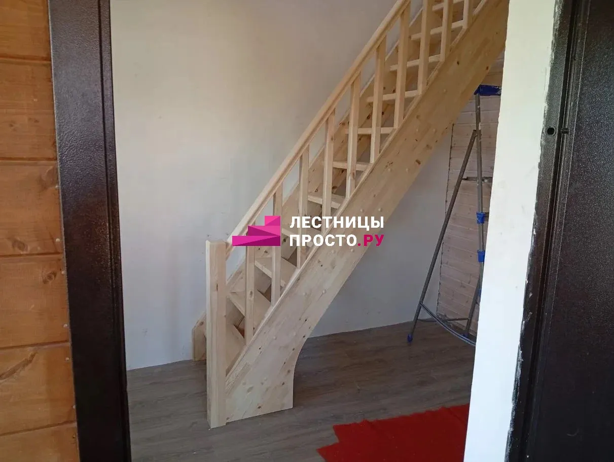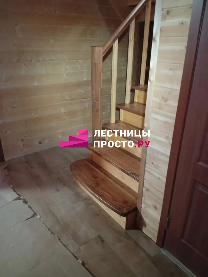 Лестница из сосны с поворотом и подступёнками для частного дома