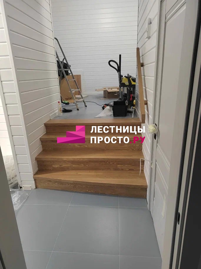 Прямая лестница из сосны без покраски