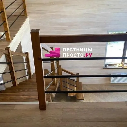 Металлическая лестница с дубовыми ступенями и ограждением LP-1-20
